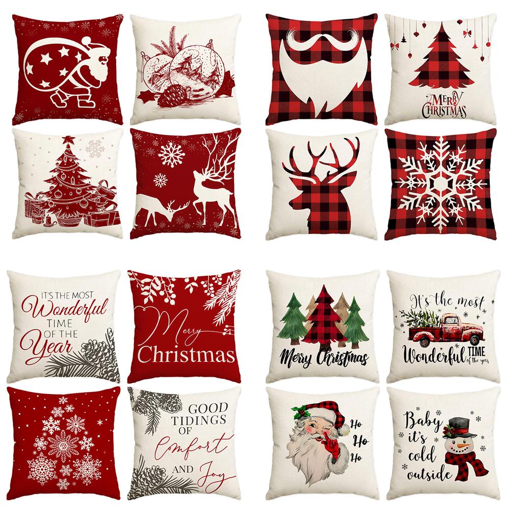 1/4pcs Christmas Pillow Cover, Elderly, Snowflake, Tree Printed Cushion Cover, Christmas Decoration (without Pillow Core)