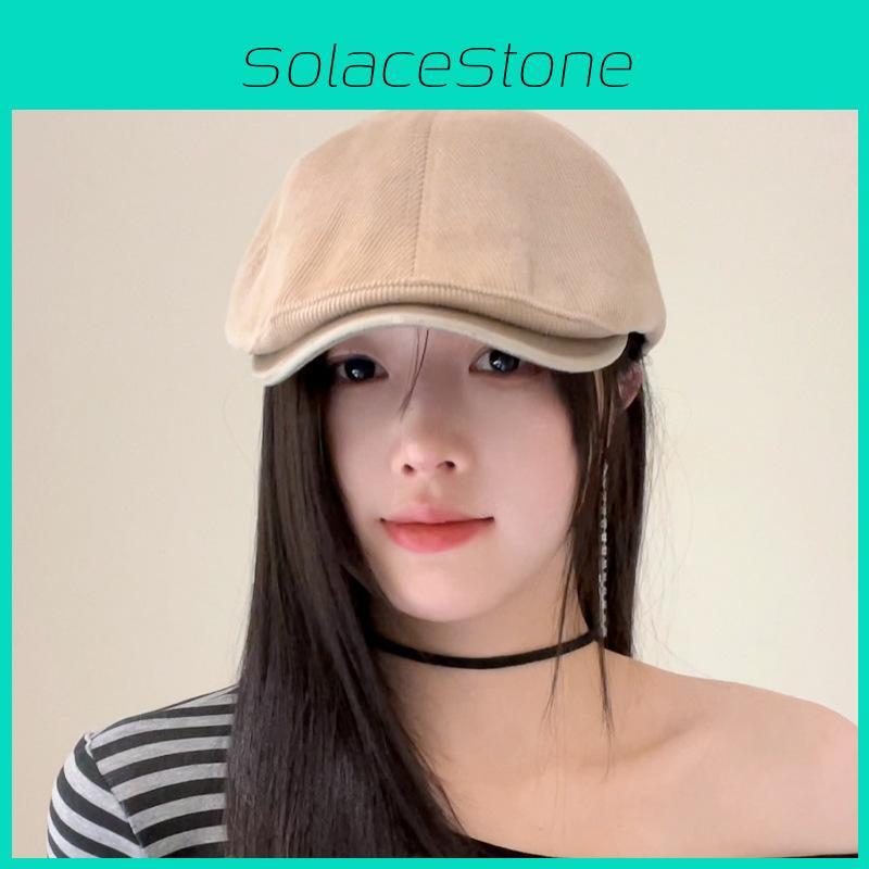 This vintage corduroy artist beret features a breathable, lightweight design crafted from polyester and cotton, Its rounded crown and short brim provide sun protection and a stylish, versatile look suitable for spring to autumn. Ideal for outdoor activities or casual outings, it offers comfort and UV shielding. Wipe clean with a damp cloth to maintain its appearance.
