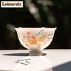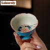 50ML Caramel Glaze Butterfly Lily High Foot Teacup Handmade Tea Bowl Jug Tea-tasting Personal Cup Chazhan Master Cups Cha Gift