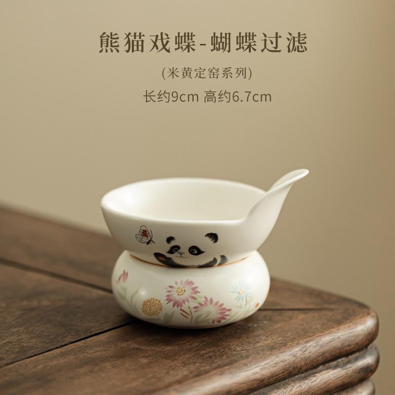 Cream Ding Kiln Panda Play Butterfly Tea Separator Infusor Vintage Tea Strainer Dispenser Tea Making Filter Tea Services Craft