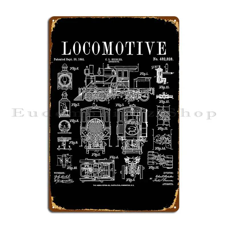 Railroad Railway Steam Locomotive Train Vintage Patent Print Metal Sign Club Printing Create Home Designing Tin Sign Poster