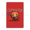 Catminton Cute Kawaii Cat Playing Sports Badminton Metal Plaque Poster Wall Pub Funny Vintage Vintage Print Tin Sign Poster