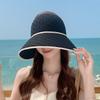 This summer striped sun hat features a large brim and a modern, open-top design crafted from breathable polyester fabric. it offers comfort and sun protection during outdoor activities. The lightweight material resists UV rays and enhances airflow, making it ideal for beach outings, picnics, or casual strolls. Wipe clean with a damp cloth to maintain its stylish appearance.
