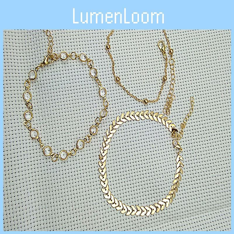 3pcs Set Of Exquisite Summer Beach Fashion Fishbone Chain Crystal Zircon Anklet