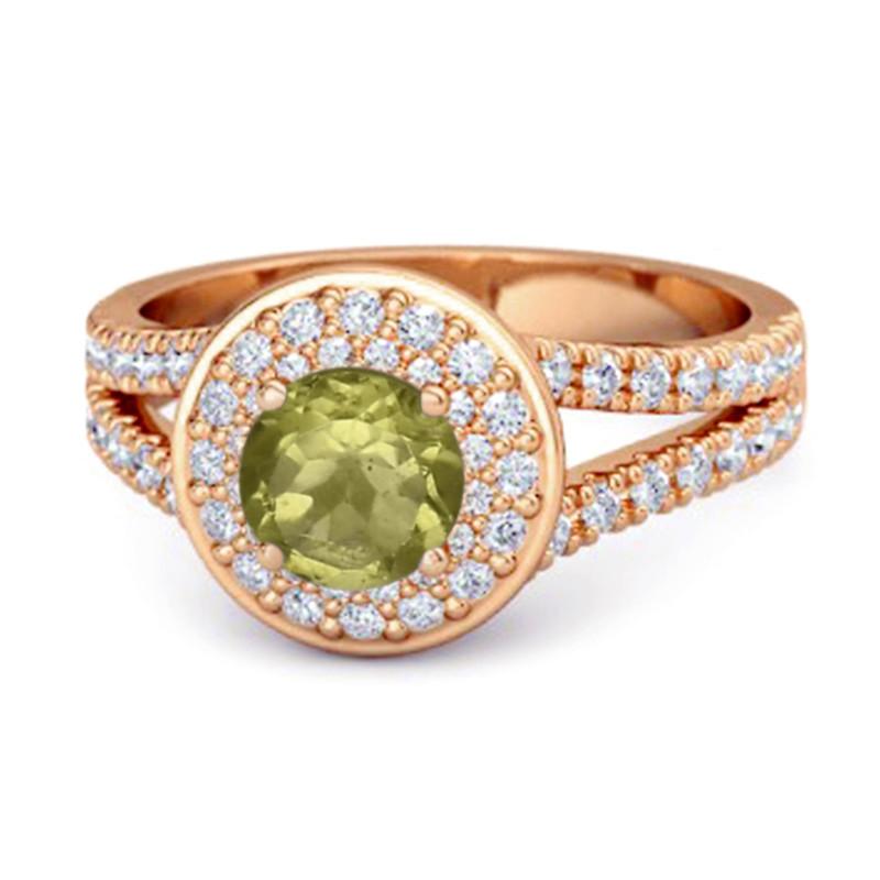 925 sterling silver double halo ring with 1.45 ct total featuring a 6mm round peridot. A vibrant and elegant design ideal for August birthdays or gifting.