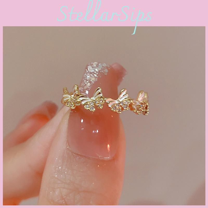 Elegant Adjustable Enamel Butterfly Ring For Women In Contemporary Design With Unique Style
