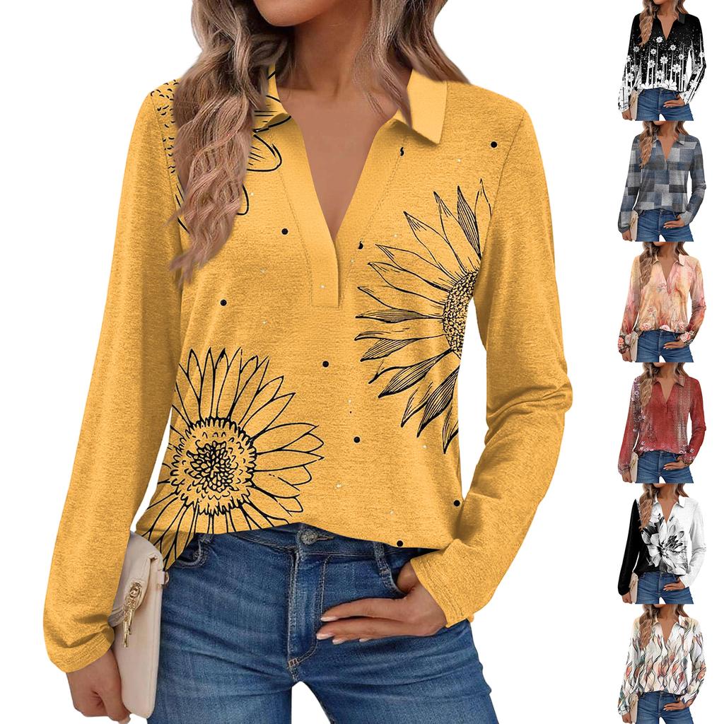 Women's Fashion Long-Sleeved Retro Floral Print Stand Collar Shirt