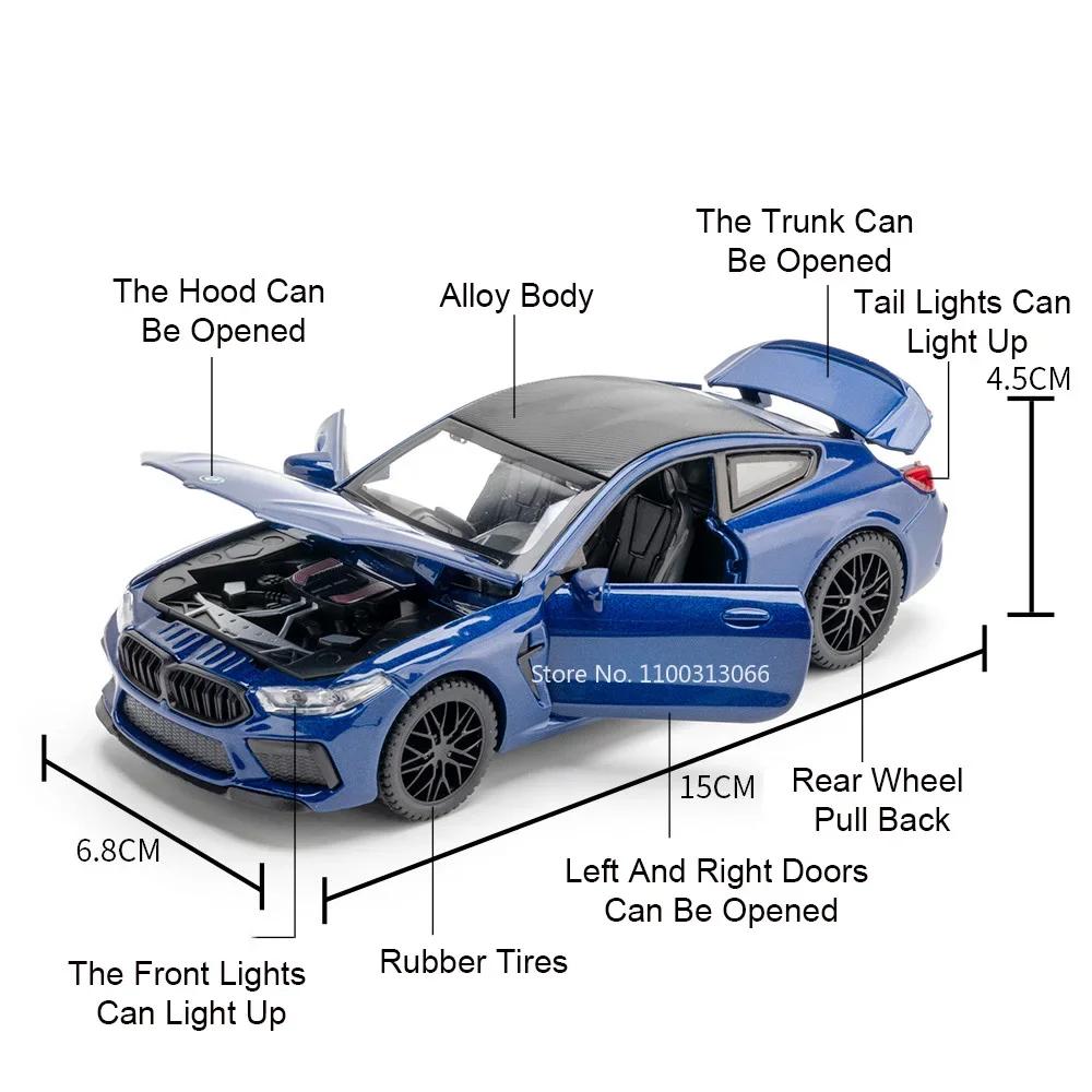 1:32 Scale M8 Models Toys Diecast Cars Doors Opened Rubber Tires Miniature Vehicle Light Music Police Car for Boys Perfect Gifts