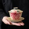 Ceramic master cup old retro peony small single tea cup household high-end tea set tea cup