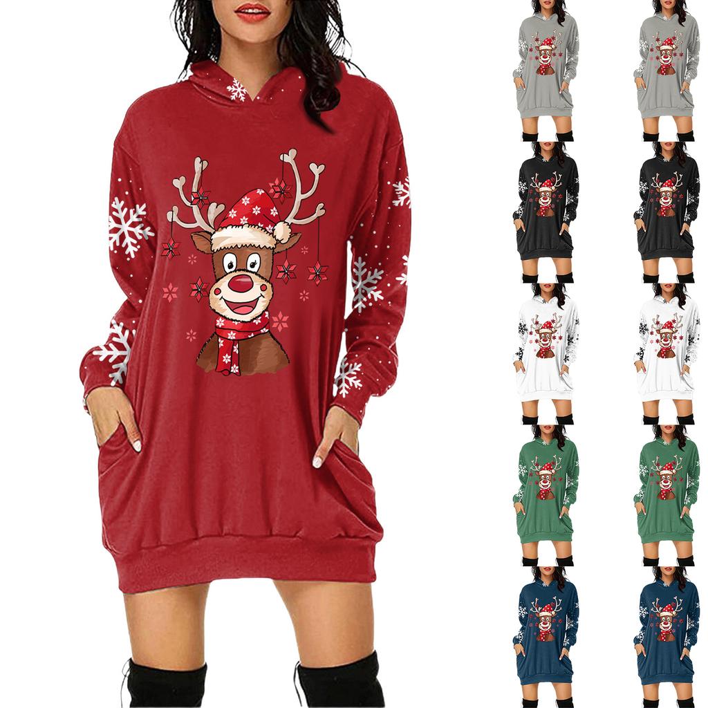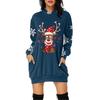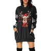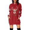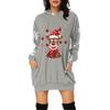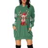 Rochie Pulover cu Glugă și Mâneci Lungi cu Buzunar și Imprimeu de Crăciun pentru Femei