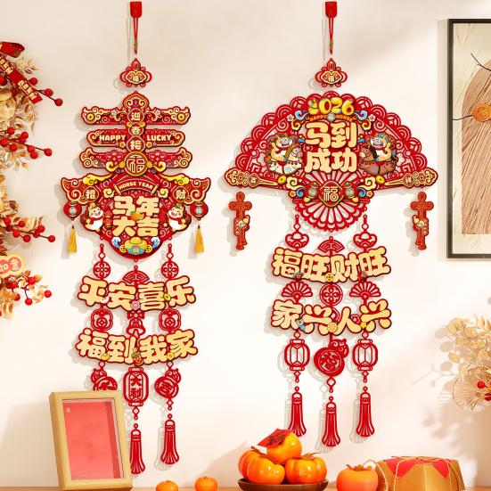 Fortune pendant crafted from durable non-woven fabric ensures long-lasting use for multiple Chinese New Year celebrations. Featuring a traditional Chinese character design with intricate patterns and elegant tassel decorations, this pendant adds a festive and sophisticated touch to any setting.