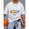 White T Shirt with Cat Lying Down and Eepy Text Print Casual Wear for Men and Women