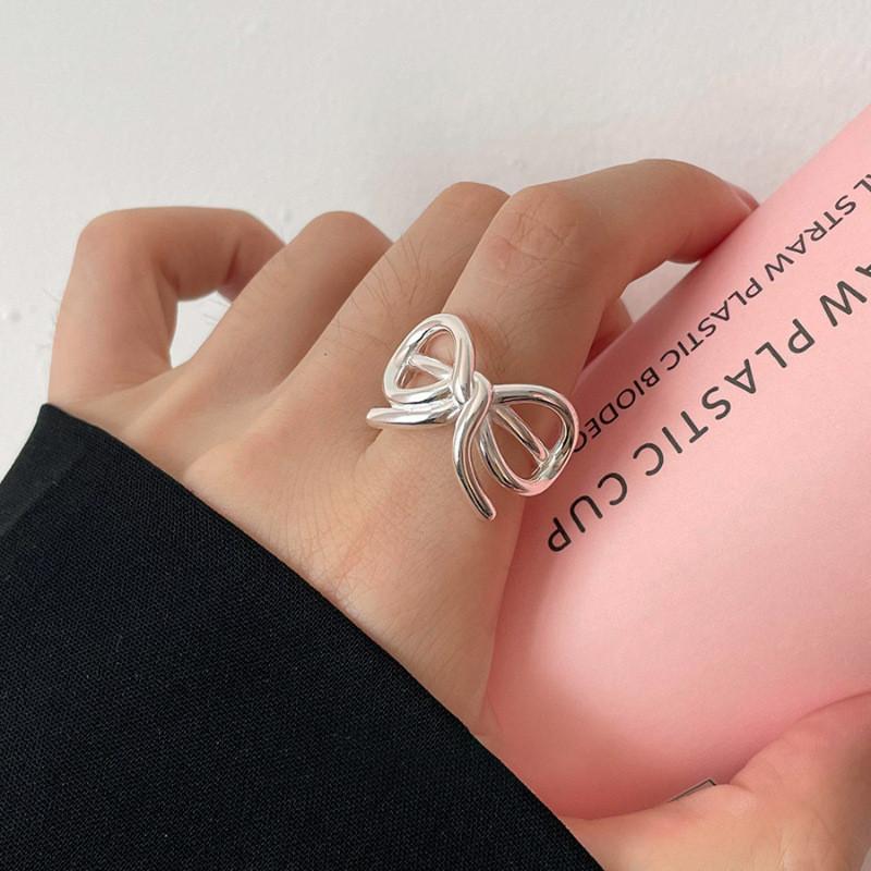 Elegant Open Adjustable Copper Bowknot Ring For Women With Unique Geometric Design