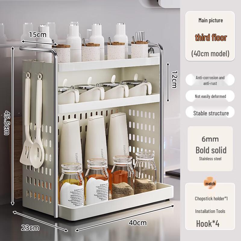 Yunshuang 3-Tier 40cm Kitchen Countertop Spice & Utensil Organizer with Pegboard