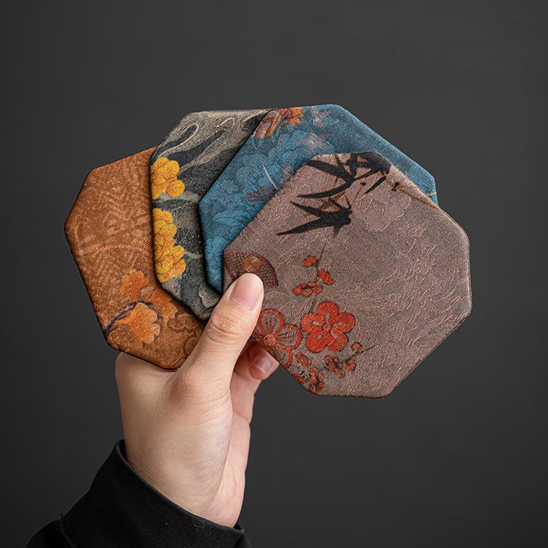 Chinese Brocade Teacup Holder Coaster Cloth Cotton Linen Pot Tea Mat Table Insulation Kung Fu Tea Ceremony Teaware Accessories