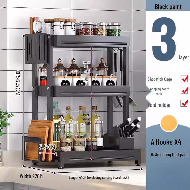 BieYing Black 3-Tier Kitchen Countertop Organizer Rack