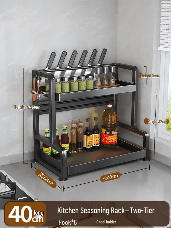 2-Tier Kitchen Countertop Spice & Knife Holder Rack
