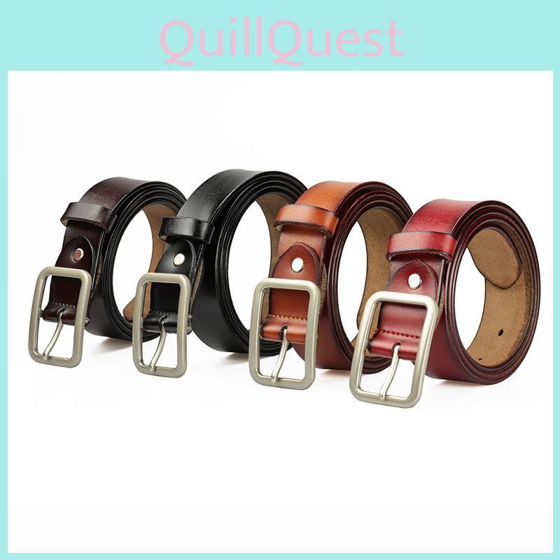 Men And Women Two Layer Leather Belt With Alloy Square Buckle For Work And Casual Wear