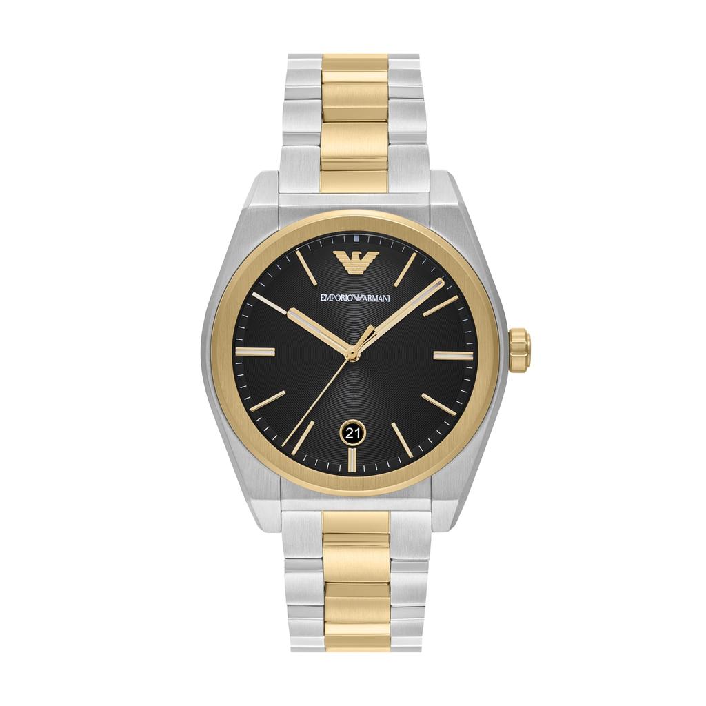 Watch Band: Durable two-tone gold and silver stainless steel bracelet with removable links for adjustable length.