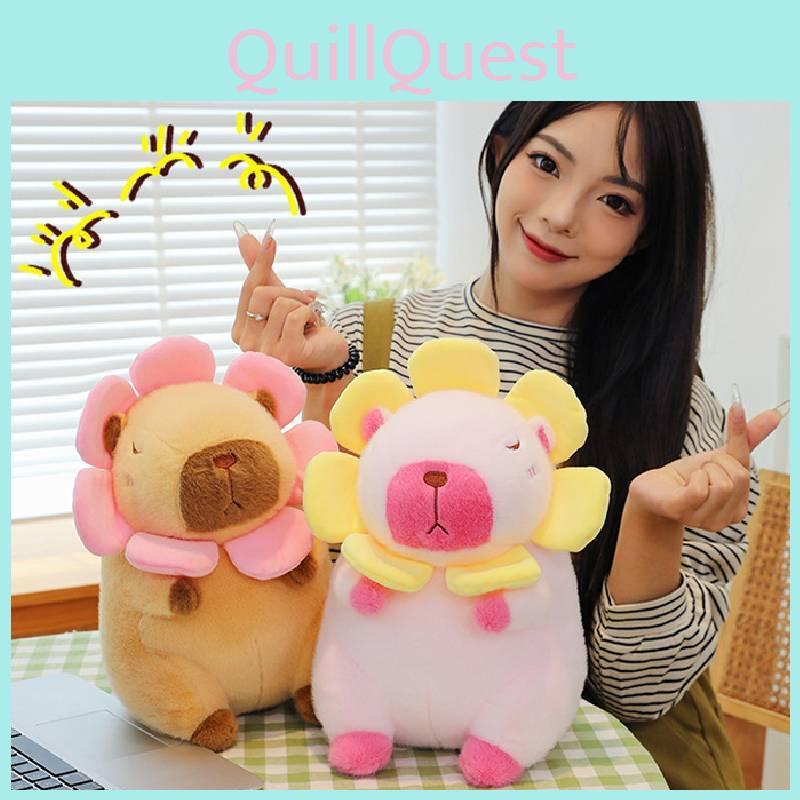 Adorable Pink And Brown Sunflower Capybara Plush Toy Soft Pillow For Kids And Girls