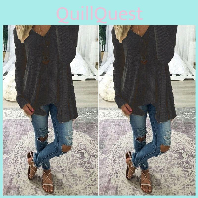Elegant Plus Size Women Long Sleeve Loose Blouse With Baggy V Neck Tunic T Shirt