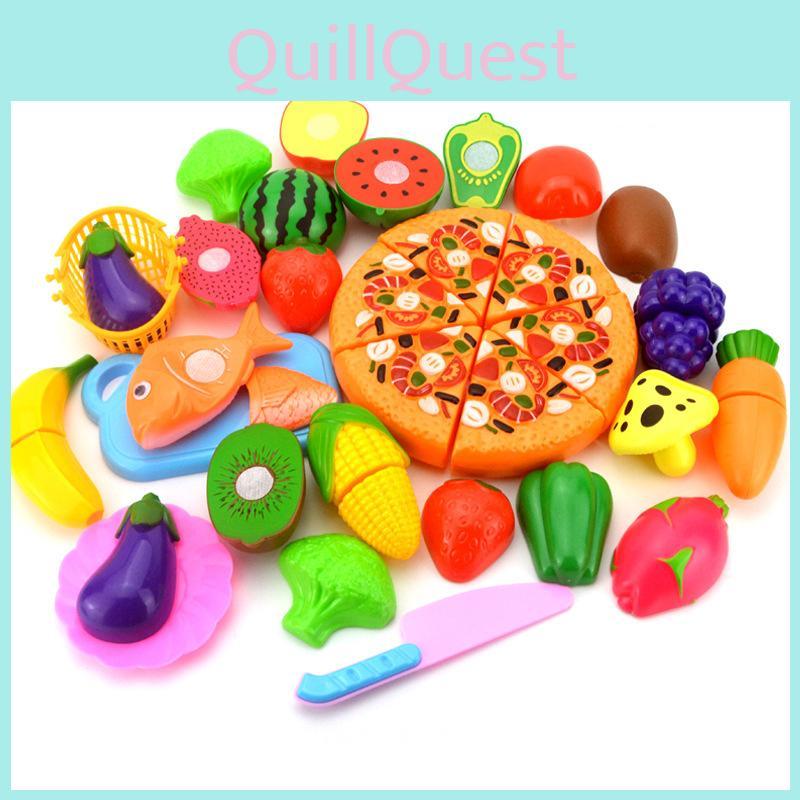 Colorful Kitchen Play Toy Set With Premium Quality Fruit And Vegetable Cutting Pieces