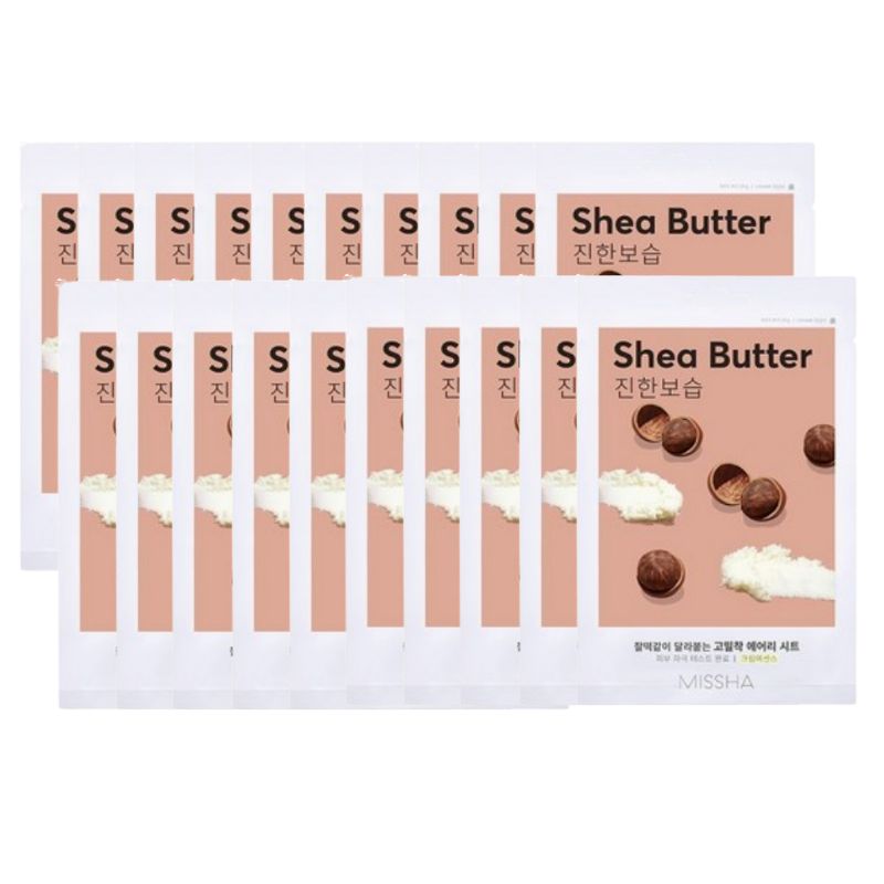 This is the “Shea Butter” variant of the popular MISSHA Airy Fit Sheet Mask — a sheet mask set (20 sheets) that delivers deep hydration and nourishment. The ultra-thin “airy fit” sheet adheres closely to skin like a second skin, letting the rich essences penetrate deeply. Designed especially for dry, dull, or dehydrated skin, it helps restore softness, improve skin barrier, and leave skin smooth and supple.
