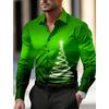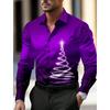 Temă de Crăciun Cămăși pentru bărbați cu imprimeu de brazi de Crăciun, grafică gradient fulg de zăpadă, cu nasturi, cu mâneci lungi, topuri la modă, subțiri