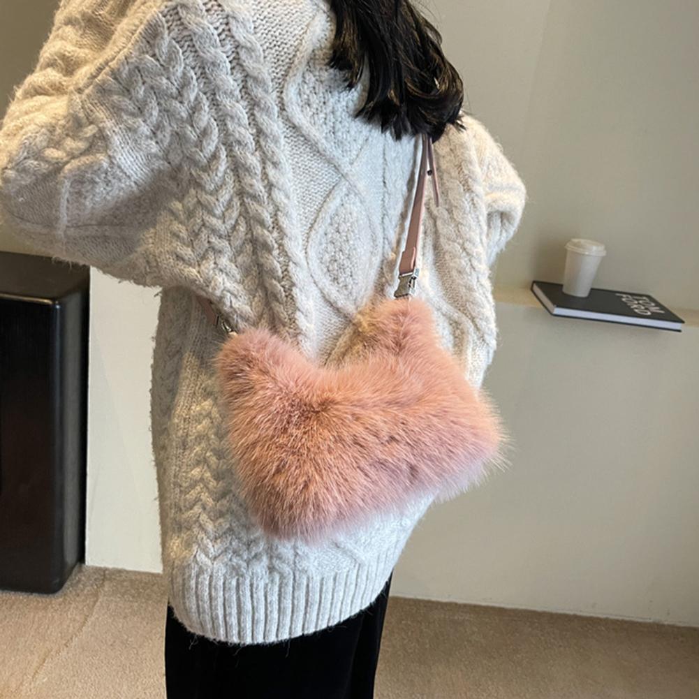 Adjustable Strap Clutch Purse Women Faux Fur Shoulder Bag Soft Plush Handbag Solid Color Hobo Bag for Travel Party