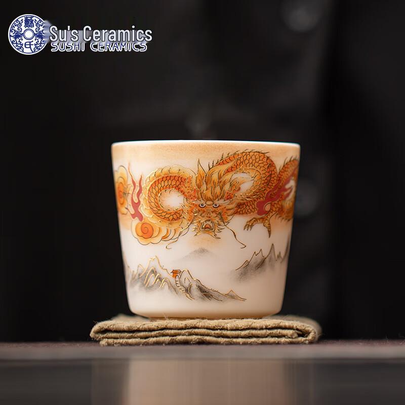 Wang Wenke Master's Dragon Mutton-fat Jade Porcelain Teacup