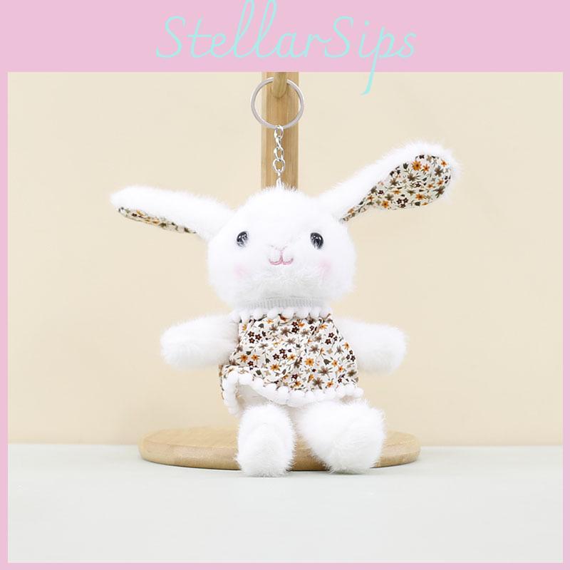 Charming Short Plush Rabbit Keychain Accessory In Lovely Floral Designs Perfect For Bags