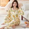 Imitation cotton pajamas women's spring and autumn gentle tulips long sleeves large size medium mother loungewear set