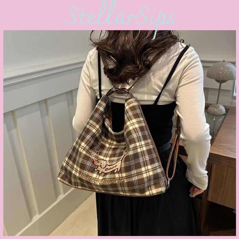 Stylish And Trendy Large Capacity Tote Backpack For Women In Chic Plaid Designs