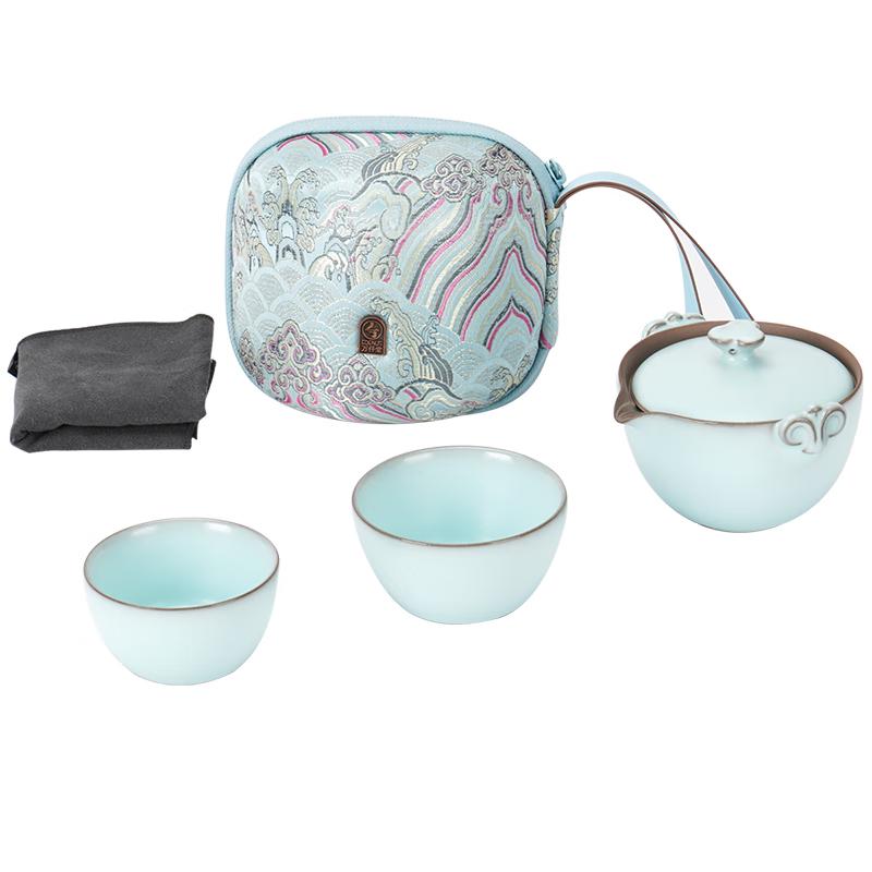 Edenus Ceramic Portable Tea Set - Powder Green Glaze