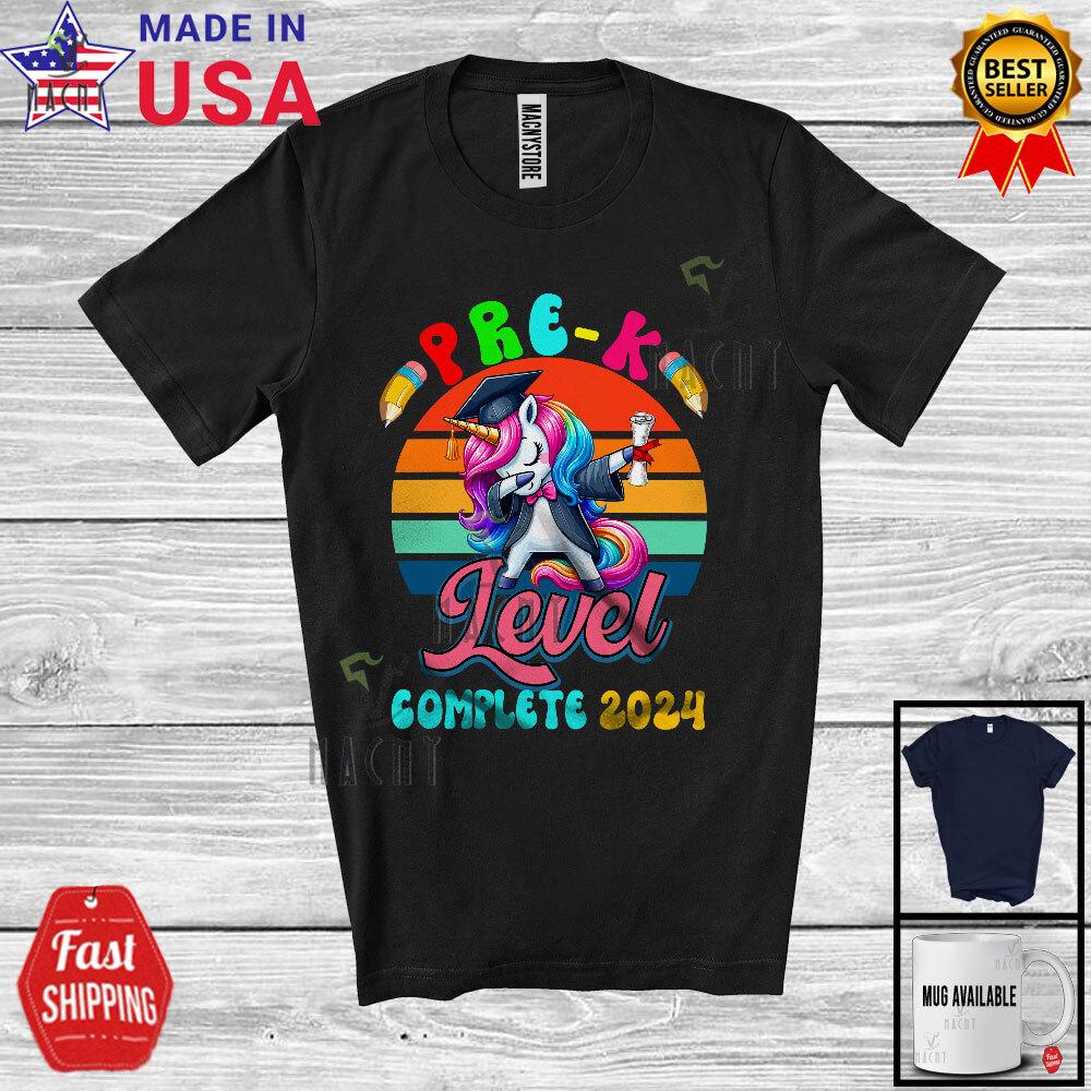Retro Pre-K Level Complete 2024, Lovely Graduation Dabbing Unicorn, Gamer Shirt