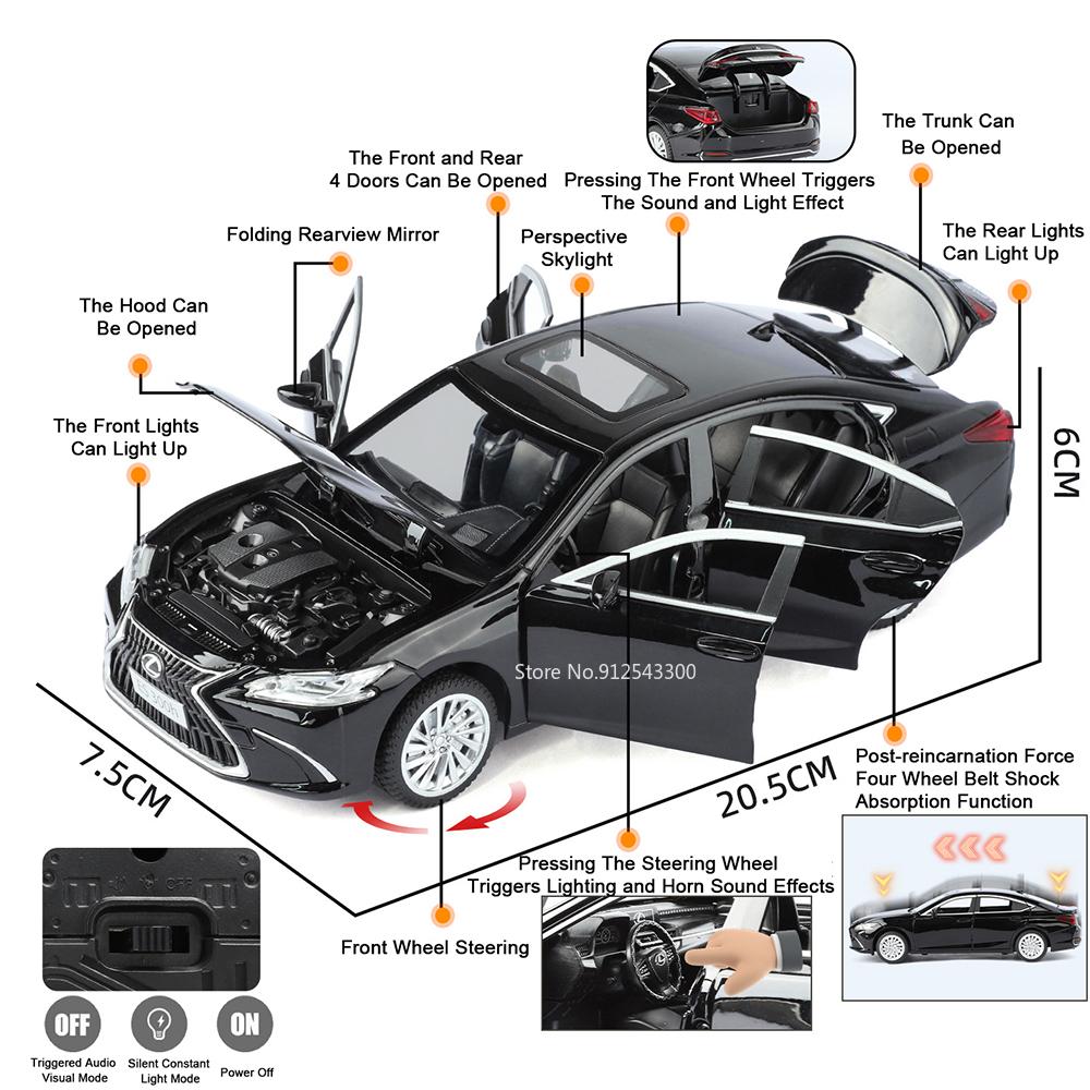 1:24 Scale ES300H LX570 Car Model Toy Sound Light Pull Back Doors Opened High Simulation Cars Models for Boys Ornaments