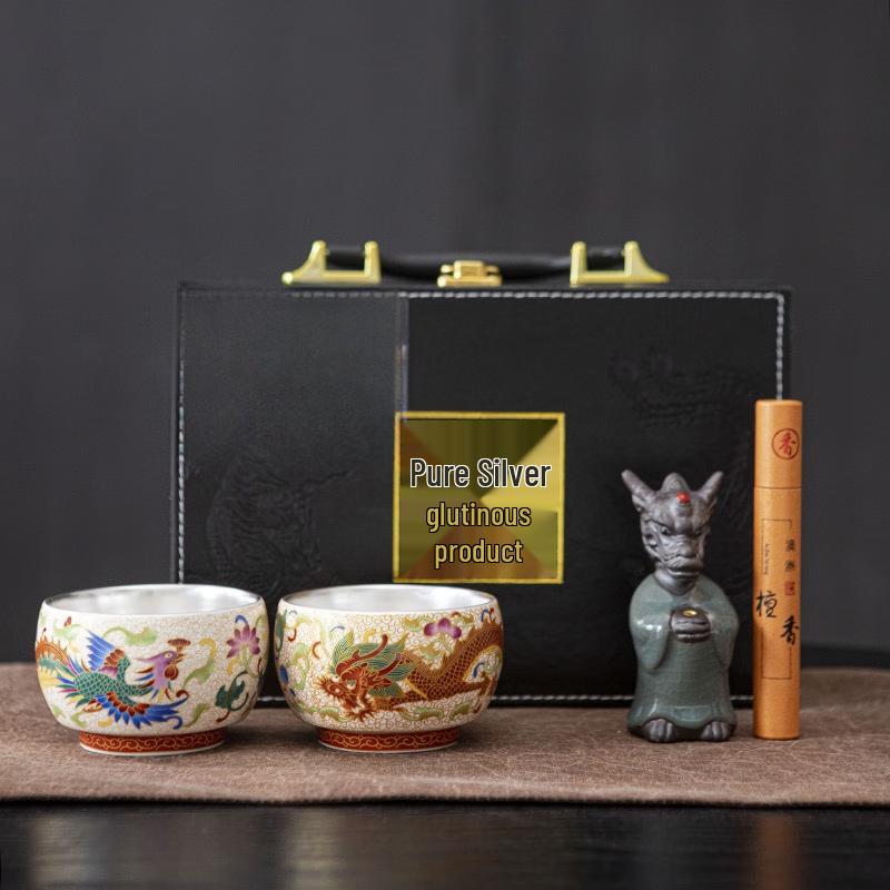 Dragon & Phoenix Ceramic Tea Cup Set