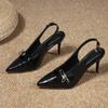 Fashion 2024 High-heeled Shoes Buckle Shallow Pointed Toe Stiletto Heels with Back Strap Slip-on Sandals Sexy Shiny Leather Shoes