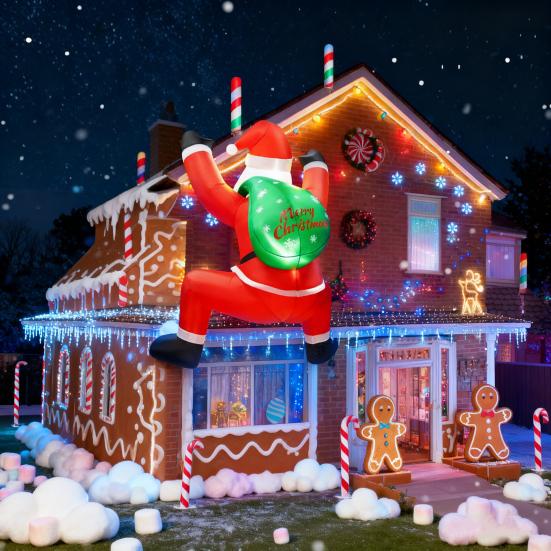 Designul său unic de agățat vă permite să legați pe Moș Crăciun oriundeacoperiș, fereastră, ușă, terasă sau gazonfăcându-l ideal pentru case, petreceri, restaurante și magazine. Ușor de umflat cu un suflător (asigurați-vă că este orientat în sus) și simplu de dezumflat și depozitat după sezon. Sărbătorește Crăciunul cu această decorațiune fermecătoare, de încredere, care aduce bucurie și amintiri de neuitat.