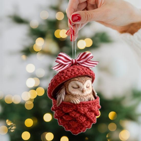 Ornamente Ghiande Animale de Pădure Acrilic Ornamente de Crăciun Pădure Cozie Acrilic 2D Tricot Con de Pin Animal Decorațiune Agățată pentru Casă Petrecere Interior