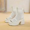 Cizme Modă Decupate Femeie Piele 2025 Nou Stil Subțire de Vară Respirabile la Interior Talpă Groasă Înălțătoare Bot de Pește Cizme Cool