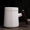 Chaxun Mutton Fat White Porcelain Tea Mug with Ebony Wood and Infuser