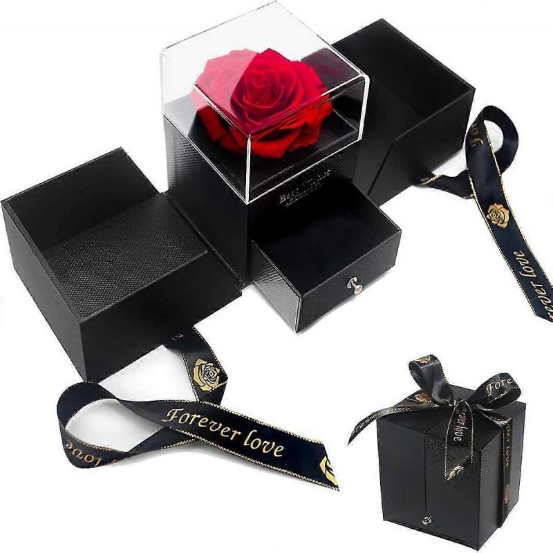 Unique gift box ideas: below the box there is a drawer, it is ideal for your personal gift, such as jewellery ring, wedding ring or necklace. Or simply place a necklace or wedding ring on the top of the rose as an unforgettable gift. ^