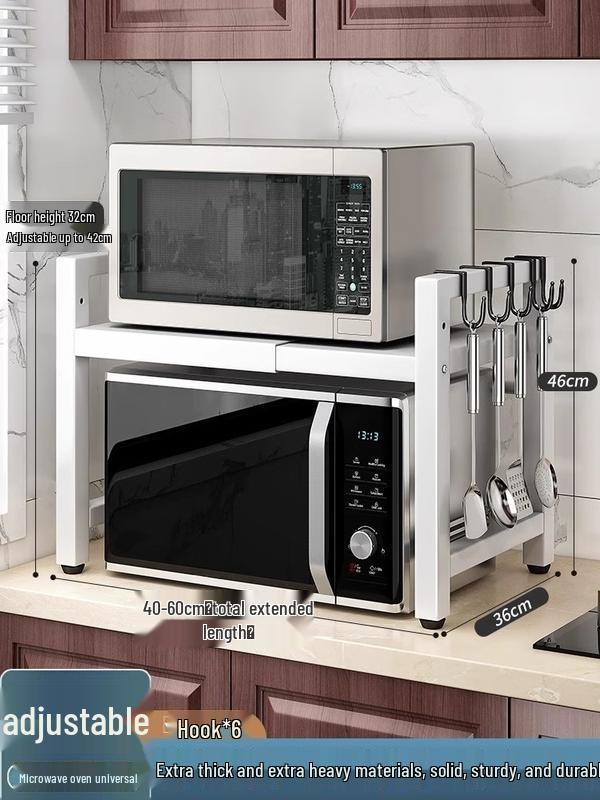 Cream White Ret retractable Microwave Oven Rack with 6 Hooks
