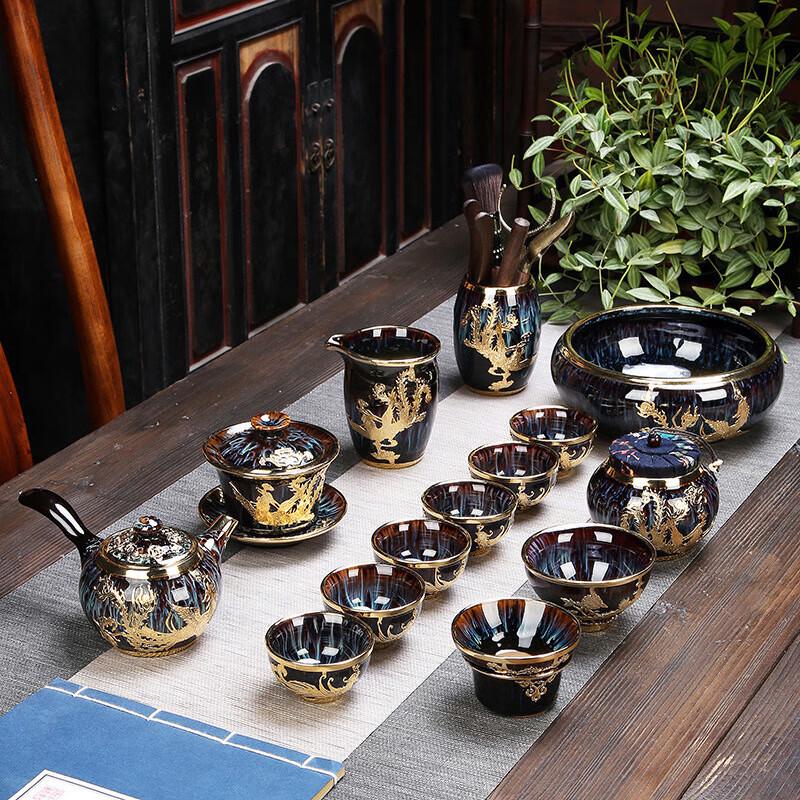 Chaxun Flambé Glaze Ceramic Gongfu Tea Set with Gold & Silver Inlay