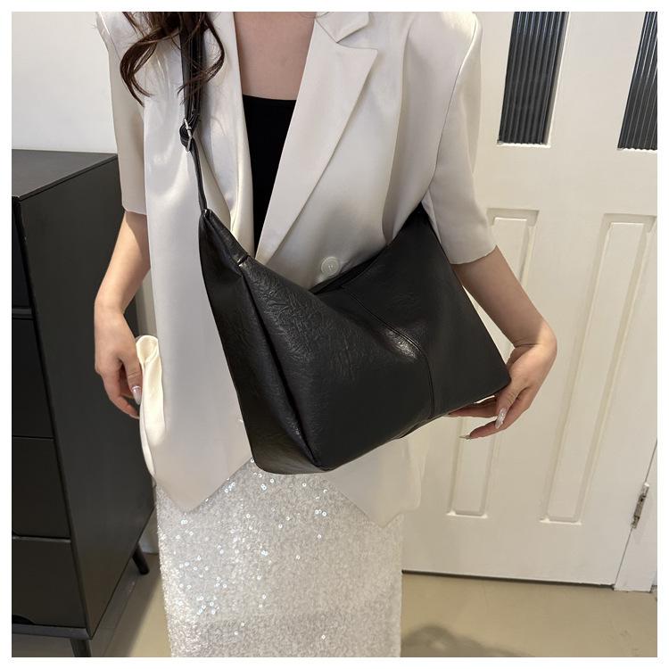 New Trendy Large Capacity Solid Color Retro Korean Fashion Simple Casual Commuter Single Shoulder Tote Bag for Women