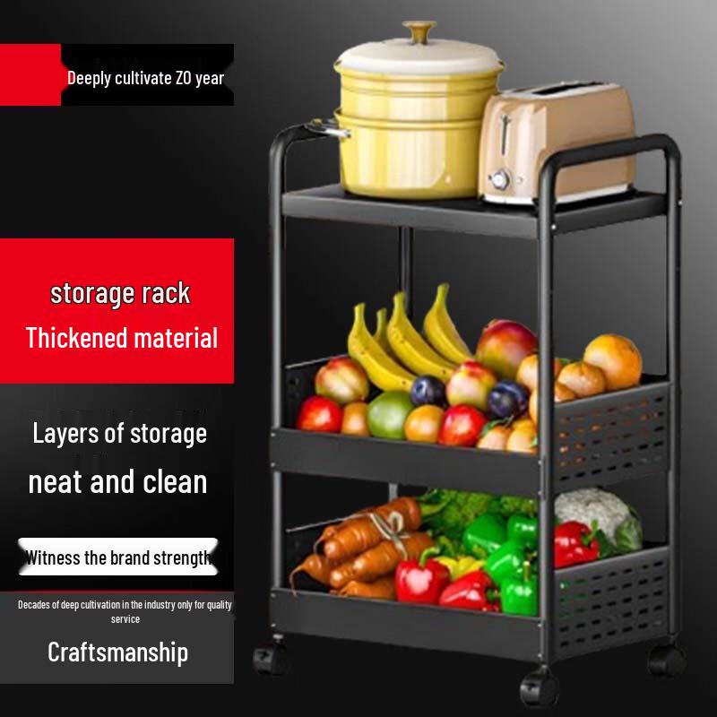 3-Tier Floor-Standing Kitchen Storage Rack with Baskets