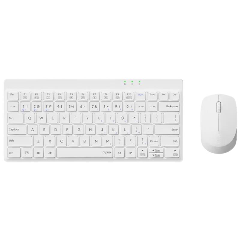 The Rapoo 8000GT Upgraded Wireless Bluetooth Keyboard and Mouse Combo offers a versatile and portable solution. Featuring an ultra-thin, compact design and multi-mode connectivity (2.4G wireless and Bluetooth), it allows seamless switching between up to 4 devices. The membrane keyboard has an approximate 80-key layout, and the set comes in a sleek white finish, powered by a rechargeable battery, ideal for laptops and office use.