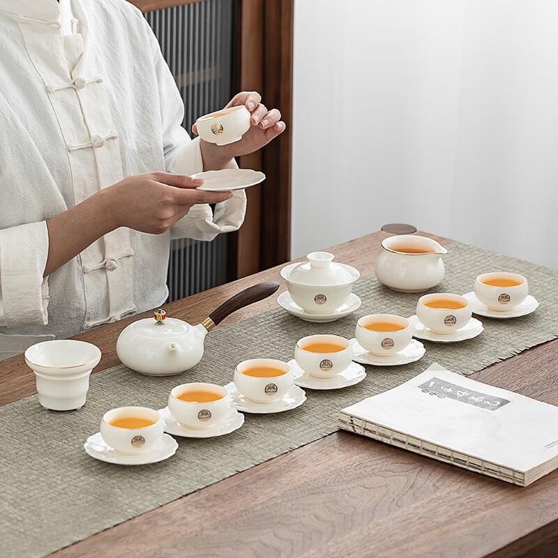Gold Inlaid Jade Porcelain 21-Piece Zisha Tea Set