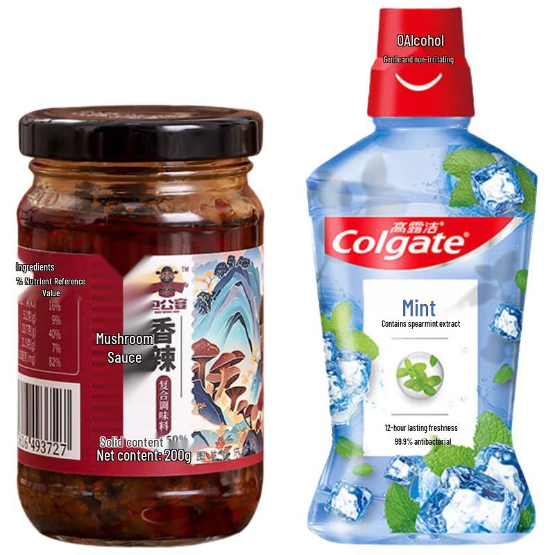 Colgate Mouthwash & Baogong Feast Spicy Mushroom Sauce Bundle